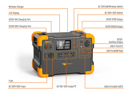 Il generatore è dotato di un caricabatterie wireless per telefono da 15W e offre opzioni di uscita CC di 12V, USB-A e USB-C. È dotato di un controller di carica solare MPPT per un efficiente ingresso del pannello solare fino a 200W.