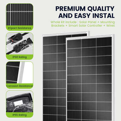 Il cuore di questo kit è un pannello solare monocristallino di alta qualità noto per la sua efficienza e durata superiori.I pannelli monocristallini sono noti per le loro eccellenti prestazioni in varie condizioni meteorologicheLa capacità di 200W garantisce di poter alimentare i dispositivi essenziali e gli elettrodomestici all'interno del tuo camper.dall'illuminazione e dai ventilatori alla ricarica di dispositivi elettronici e al funzionamento di piccoli frigoriferiQuesto lo rende una scelta eccellente per i campeggiatori che vogliono mantenere il comfort e la funzionalità pur rimanendo consapevoli dell'ambiente.
