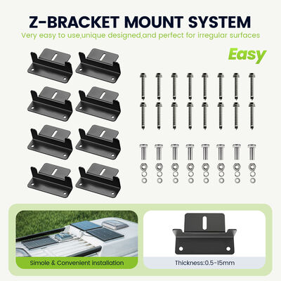 Una delle caratteristiche più importanti di questo sistema di energia solare da 400W è il suo hardware di montaggio completo incluso nel pacchetto.Ciò significa che avrete tutti i componenti necessari per installare in modo sicuro i pannelli solari sul vostro camper senza dover acquistare parti aggiuntiveL'hardware è progettato per resistere ai rigori del viaggio e delle condizioni esterne, assicurando che i pannelli rimangano saldamente attaccati e posizionati per la massima esposizione al sole.